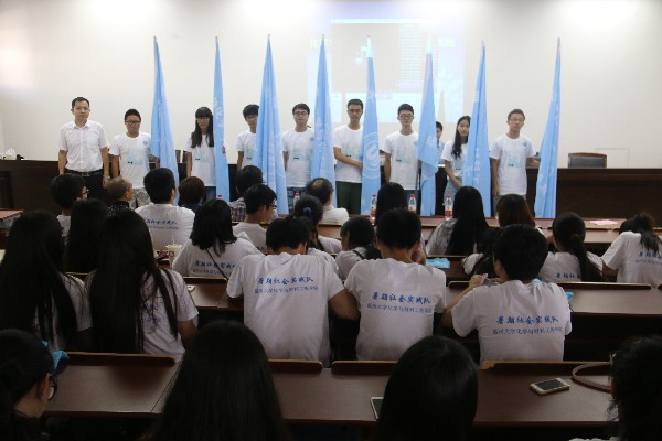 燚焱炎火暑期社会实践队的队长周恬作为学生代表向各位指导老师和实践队员做出承诺,表示要认真尽力地完成此次暑期实践活动。
