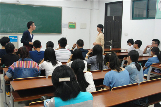 面试伊始,由面试者上台进行自我介绍,时间限制为两分钟。大部分面试者上台能够从容应对,给台下的学长学姐们展现出自信的一面。也有一些报名者表现的非常紧张。台下各个中心的主任与副主任们关注着每一位报名者的自我介绍,并不时做些记录。之后主任与副主任上台,向每一位面试者提出问题。有想法的面试者主动举手回答问题。大家都踊跃回答问题,一个问题通常会有许多人举手回答。