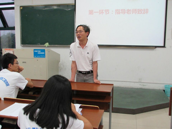 暑期社会实践活动的序幕。仪式第二项,孙安梭书记发表讲话。仪式第三项,林萍老师发言,介绍了今年实践队情况,强调了安全问题并告知新闻稿撰写的注意事项。仪式第四项,学生代表王优媛发表出征宣言。仪式第五项,授旗仪式。