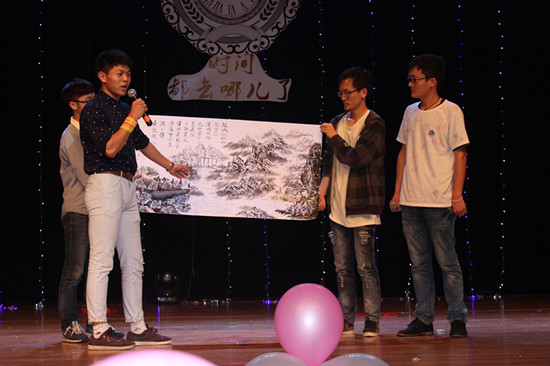 值得一提的是,被称为“2014届毕业生欢送会小彩旗”的我院13化类1班的韩然然同学,与前学生会主席、10级毕业生陆会杰在晚会期间即兴创作的一幅《大罗山风光图》,展示了我院学生浓厚的艺术修养。