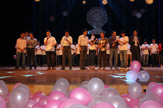 最后,全体毕业生班主任们的集体诗朗诵,将整台晚会的气氛推向了高潮。晚会在12材料代威同学的《时间都去哪儿了》器乐演奏中圆满结束。