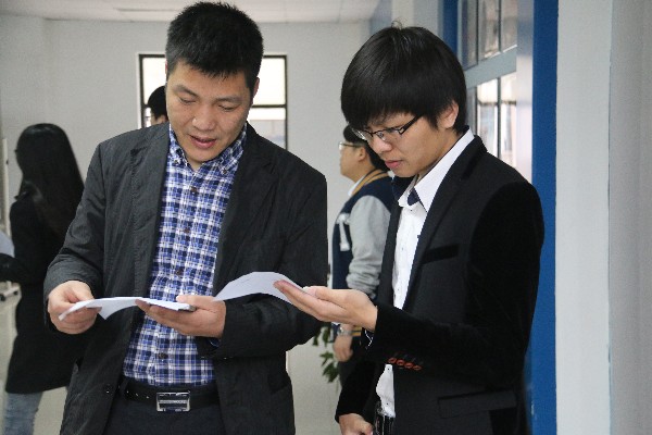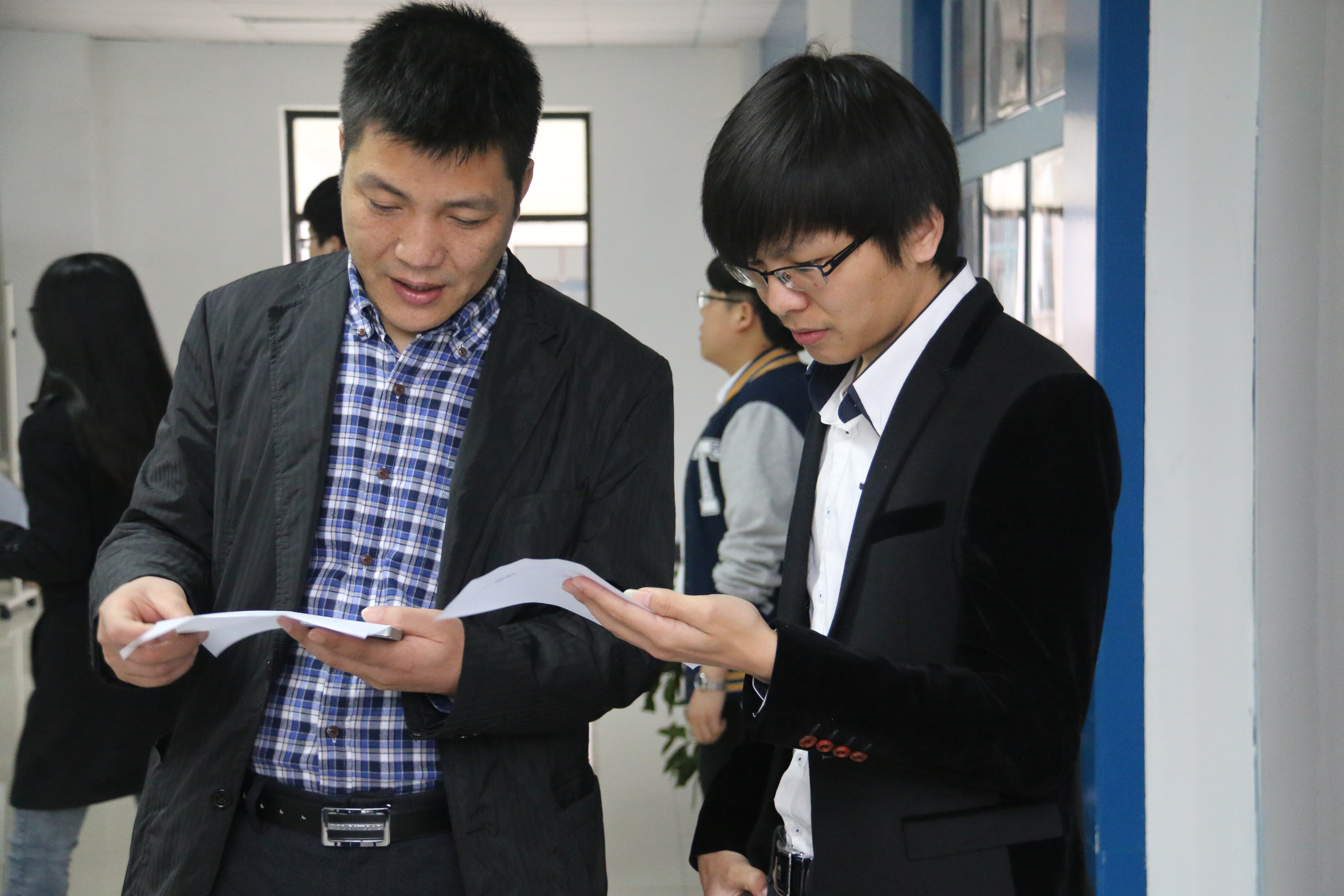 10:30时,温州大学制笔实验室主任王兆伦老师在11B-208召集了已报名制笔班的同学与企业进行面对面的交流。盛丰企业介绍公司时说道,目前制笔行业虽然在国外已经处于饱和状态,但在国内发展空间仍旧很大,将来定会有较好的事业前景。座下的同学们也纷纷提出了自己的疑问,其中问道:“关于制笔销售的具体内容与技术相关的有哪些?”招聘方表示这项工作主外销,需要英语好,直接沟通;也要懂技术,能解决技术问题;更要具备一定的口才。除此之外,王兆伦老师还介绍了学校的制笔班,这个制笔班主要以质检、研发等技术为主,希望有兴趣的同学多多参与。