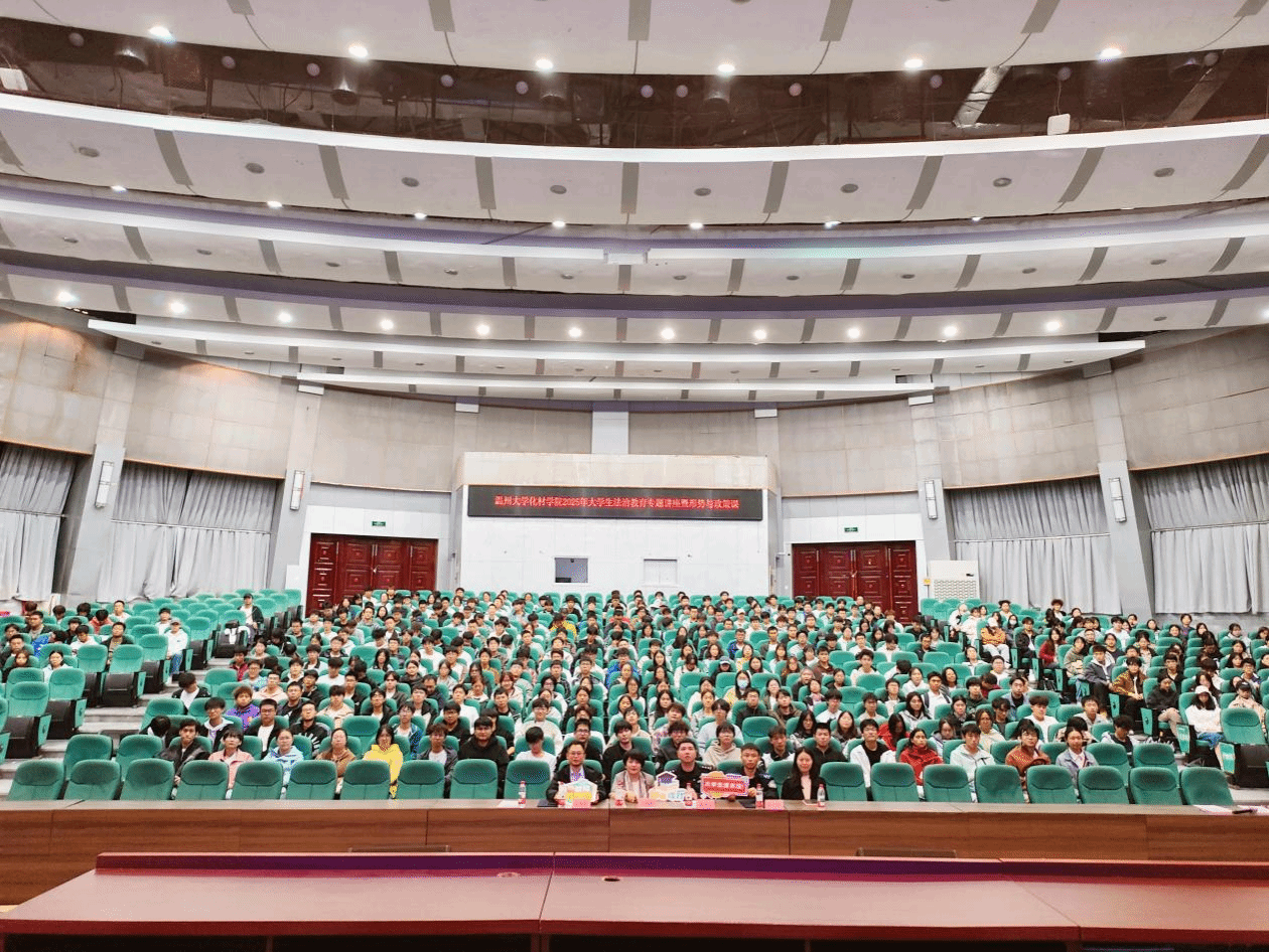 在南9号楼报告厅举办大学生法治教育专题讲座。茶山派出所潘鸿浩警长、陈志坚警官,浙江海昌律师事务所合伙人黄漫超律师,院党委副书记王晓华,学工办辅导员,2025 级全体本研新生及各年级班长、团支书、安全委员参会。讲座由“筑安”工程专项辅导员李政主持。