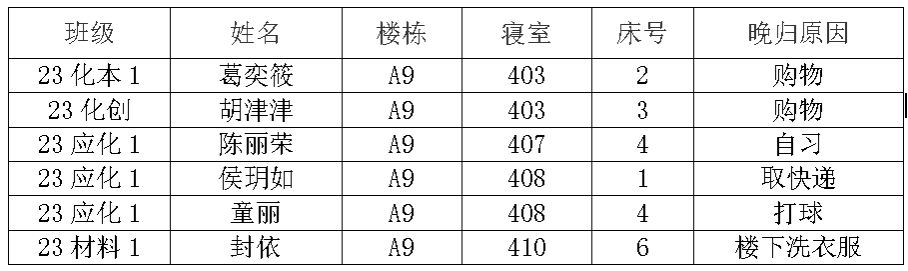 (2)若有学生在其他宿舍舍友可告知其返回核实;