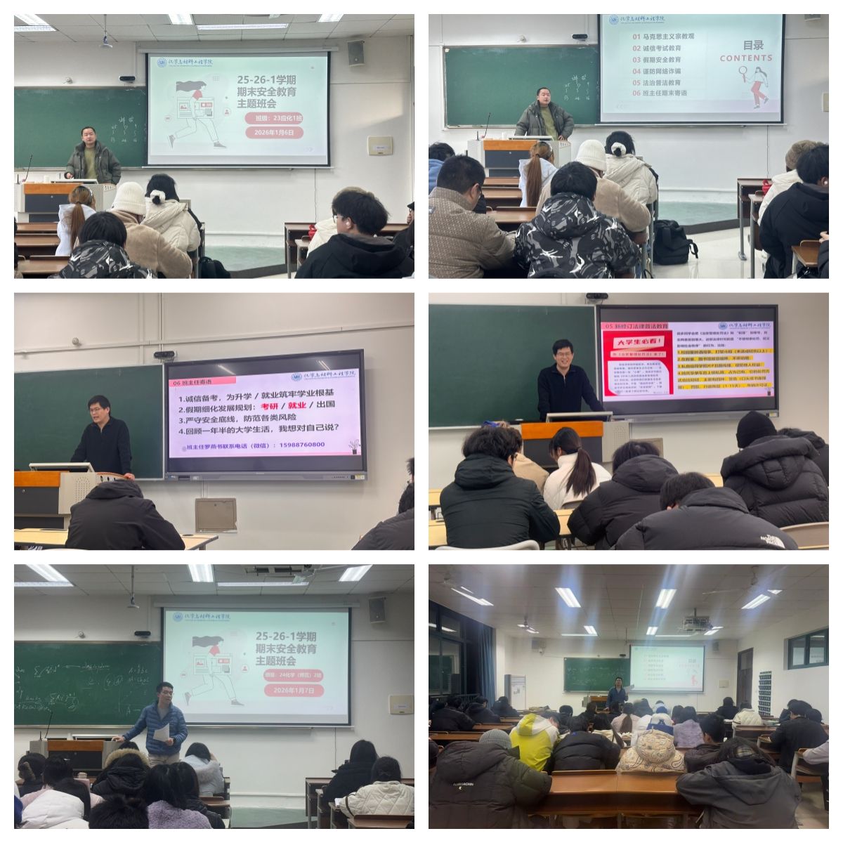 积极响应学校工作部署,于近期组织各班级班主任面向全体本科及研究生,召开了2025-2026学年秋季学期期末主题班会。班会围绕学校统一要求,紧密结合学院学生实际,系统开展了四项核心教育。