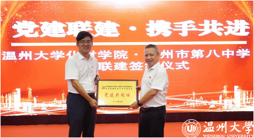 与温州八中签署的党建联建协议——双方以“组织共建、资源共享、活动共联”为原则,将高校党员师生的科研专长与中学化学教学需求深度融合,共同设计了“实验安全实训”“环保化学探秘”等8个实践模块。