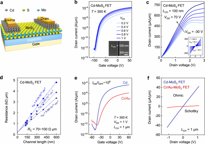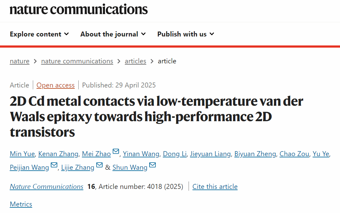 该论文以“2D Cd metal contacts via low-temperature van der Waals epitaxy towards high-performance 2D transistors”为题发表于国际顶级期刊⟪