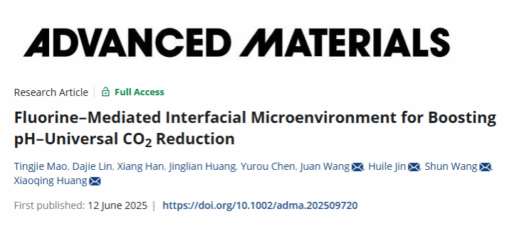 校王舜/金辉乐/王娟团队以及厦门大学黄小青教授在国际顶级期刊《Advanced Materials》发表题为“Fluorine–Mediated Interfacial Microenvironment for Boosting pH–Universal CO2 Reduction.”的学术论文。在这项工作中,使用缺陷辅助策略成功的将镍物种(单原子和原子簇)锚定在氟碳基材(FC)上,通过构建单原子耦合原子团簇策略制备得到了高效稳定的CO2RR电催化剂,优化后的Ni/FC在酸性、中性和碱性电解质中表现出优异的FECO,分别为92.0%、99.1%和98.8%。相反,当F元素不存在时,HER过程占主导地位。更重要的是,Ni/FC可以在宽pH范围内保持优异的FECO。值得注意,在工业电流密度(200 mA cm-2)下能稳定运行3000小时,明显优于最近在不同电解质条件下报道的电催化剂。结合密度泛函理论(DFT)计算、原位红外光谱(ATR-FTIR)以及原位增强拉曼测试表征全面揭示了引入F后FECO增强和FEH2抑制的内在原因:F的高电负性将导致正Cδ+中心的形成,这会抑制氢的吸附,提高界面水的离解能垒,从而抑制竞争性HER过程(即正电碳Cδ+中心能够 “隔离”质子,抑制HER)。同时,气-固-液界面处产生的局部微环境有利于降低速率决定步骤(RDS)的能量势垒,从而促进CO2转化为CO。